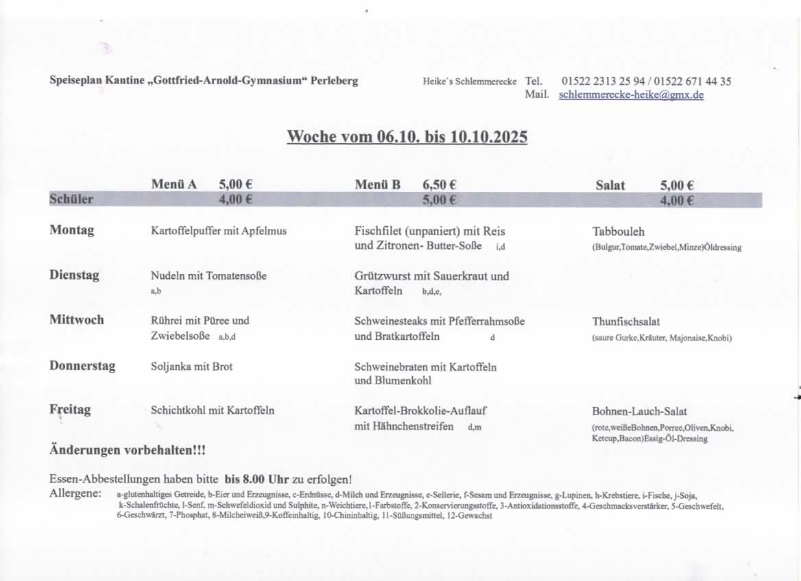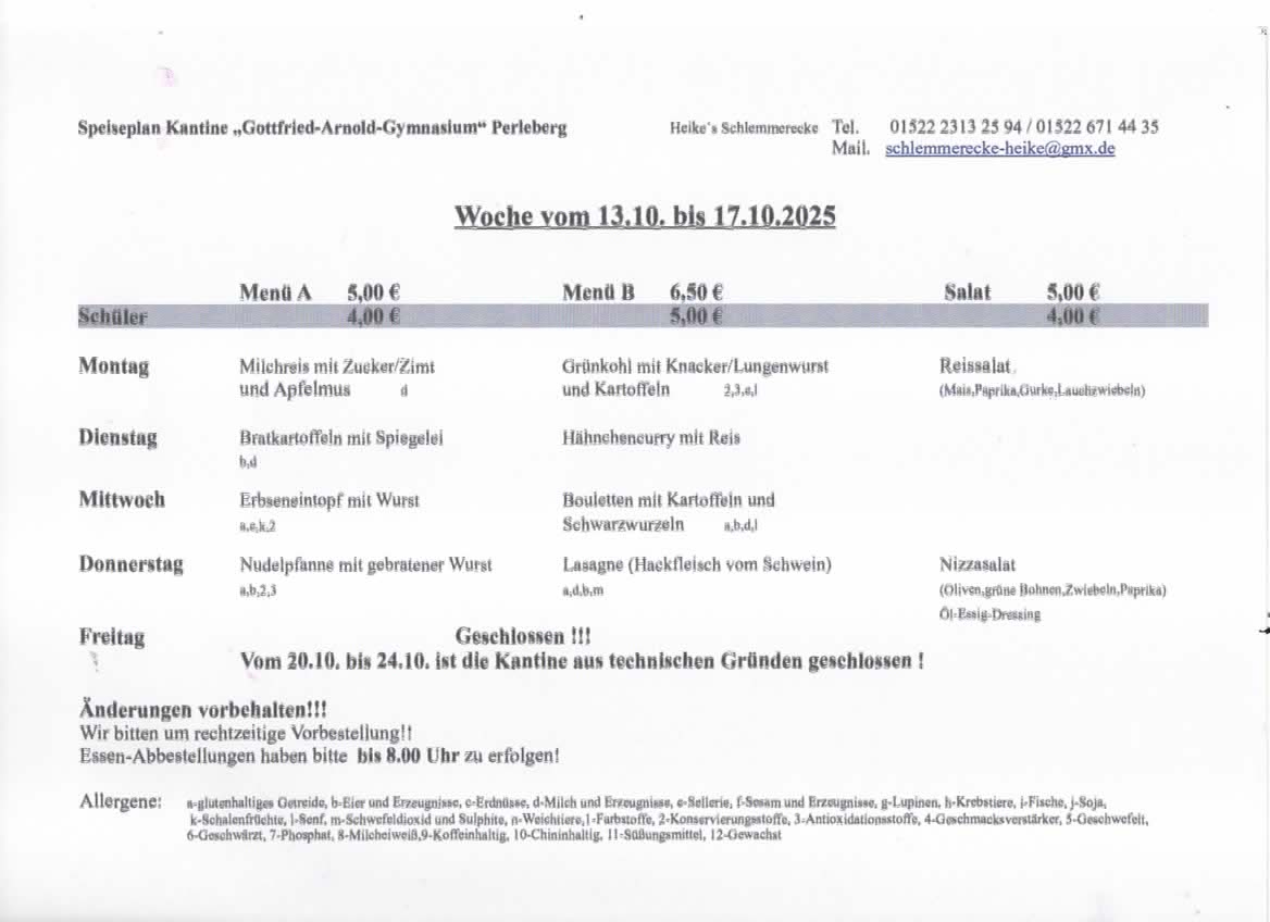 aus technischen Gründen bleibt unsere Kantine vom 17.10.2025 bis 24.10.2025 geschlossen.