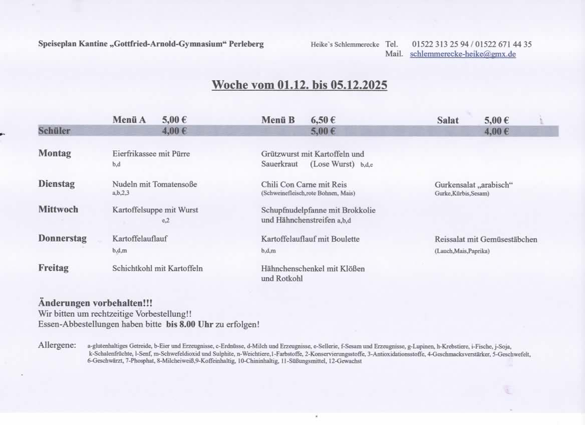 Man kann bei uns das Mittagessen in der Kantine von 11.50 Uhr bis 12.50 Uhr einnehmen.